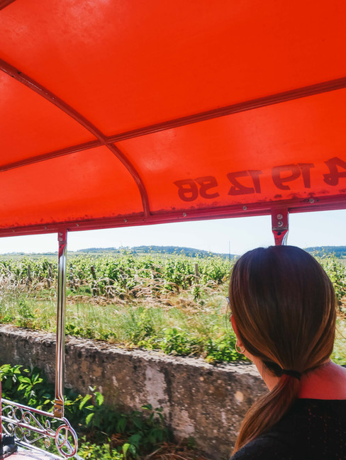 Au départ de Beaune, nous partons visiter le château de Pommard, mais pas avec n’importe quel moyen de locomotion ! Nous partons accompagnés de Kushal et de son tuk-tuk, traverser les vignes bourguignonnes le long de petites routes de campagne absolument charmantes. Une sortie insolite et très originale que Kushal propose sous différents formats (excursions, formule petit déjeuner ou apéro dans les vignes, etc.).