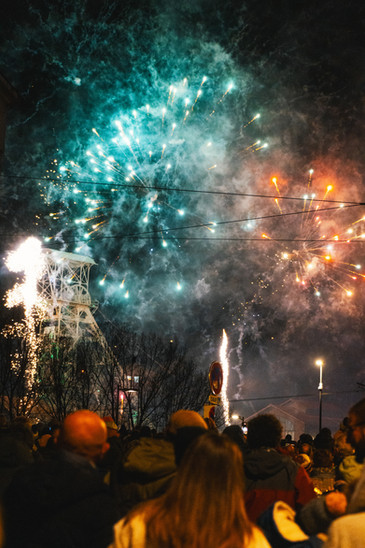 Nous avons découvert Saint-Étienne durant un week-end de décembre, le moment parfait pour ressentir l’atmosphère chaleureuse et animée de la ville. Nous y étions notamment à l’occasion de la fête de la Sainte-Barbe, une tradition profondément ancrée dans l'identité stéphanoise qui se fête tous les premiers week-ends de décembre. Pendant quelques jours, toute la ville devient une scène : déambulations, feu d’artifice, spectacles… une véritable effervescence culturelle et événementielle qui rend l’expérience unique.
